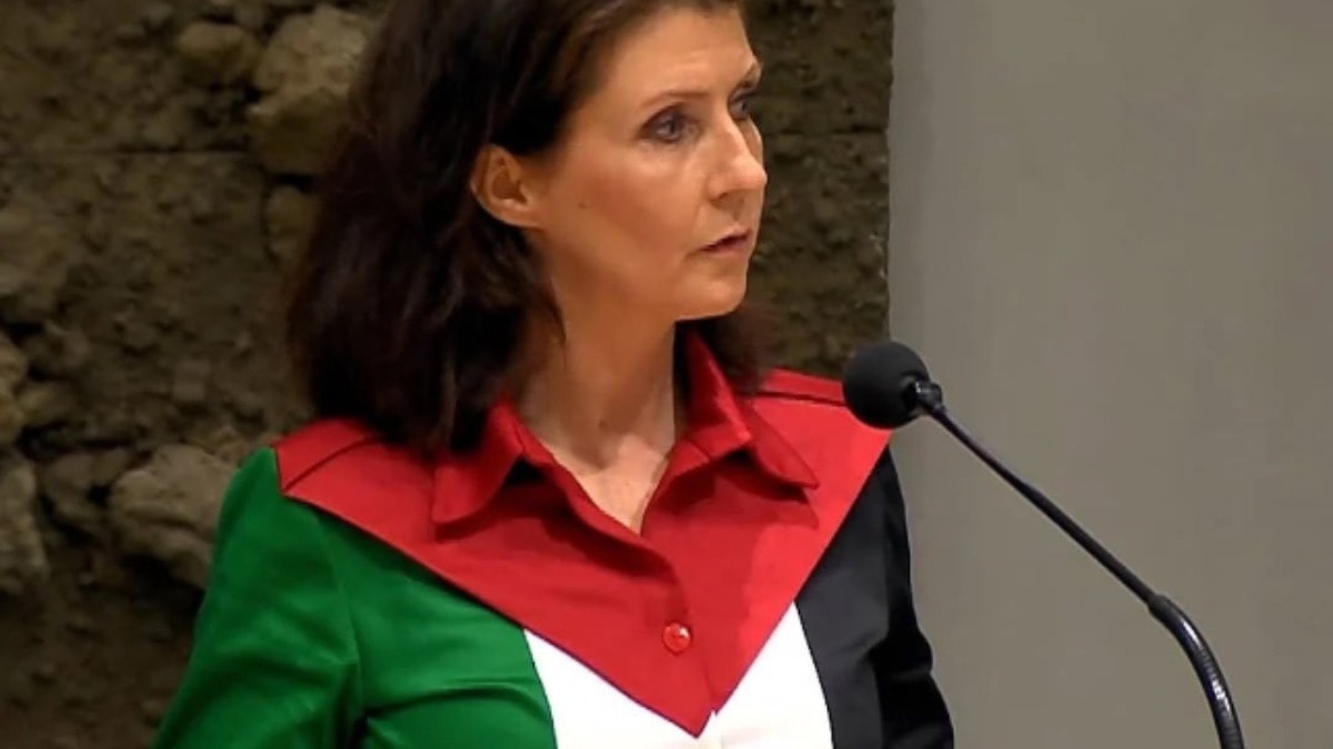 Hollanda Parlamentosu’nda Bütçe görüşmeleri sırasında ilginç bir tartışma yaşandı. Hayvanlar İçin Siyasai Parti’nin lideri Esther Ouwehand, Filistin bayrağının renklerini taşıyan bir bluzla salona geldi.