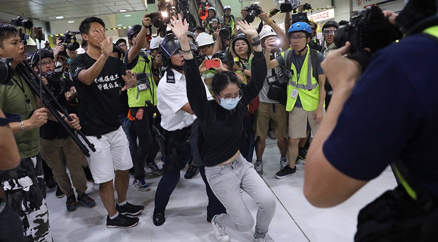 Bu haftaki protesto yürüyüşü, yüksek sıcaklığa rağmen Hong Kong’un Sha Tin kentinde düzenlendi. Son haftalarda yapılan protestoların şiddetini arttırmasıyla Polis, göz yaşartıcı gaz kullanırken, bazı protestocular polise taşla karşılık veriyor.