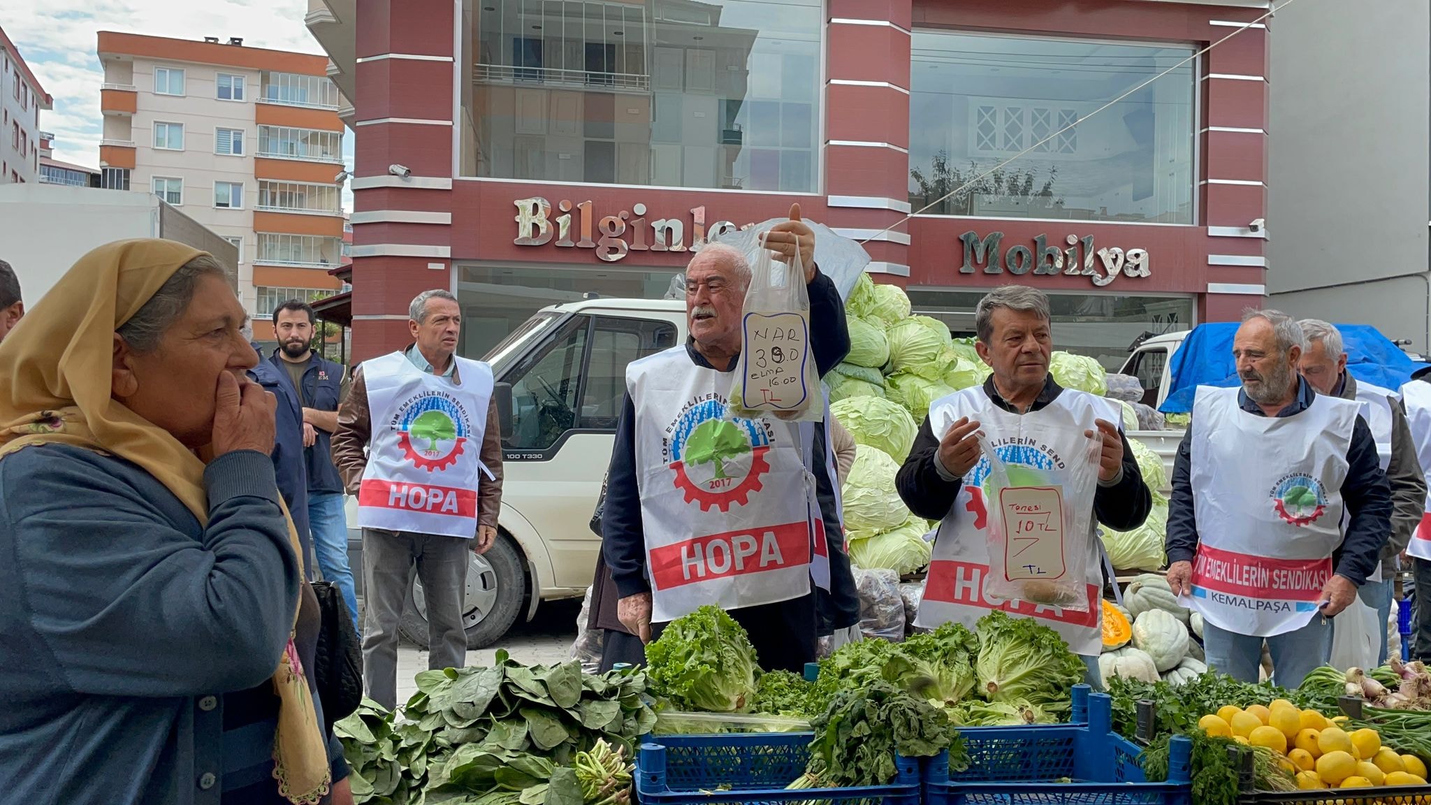 Eylem öncesi emekliler, Hopa’daki semt pazarını ziyaret ederek yüksek fiyatlara dikkat çekti. Pazarda sembolik alışveriş yapan emekliler, temel gıda ürünlerine erişimin giderek zorlaştığını vurguladı.