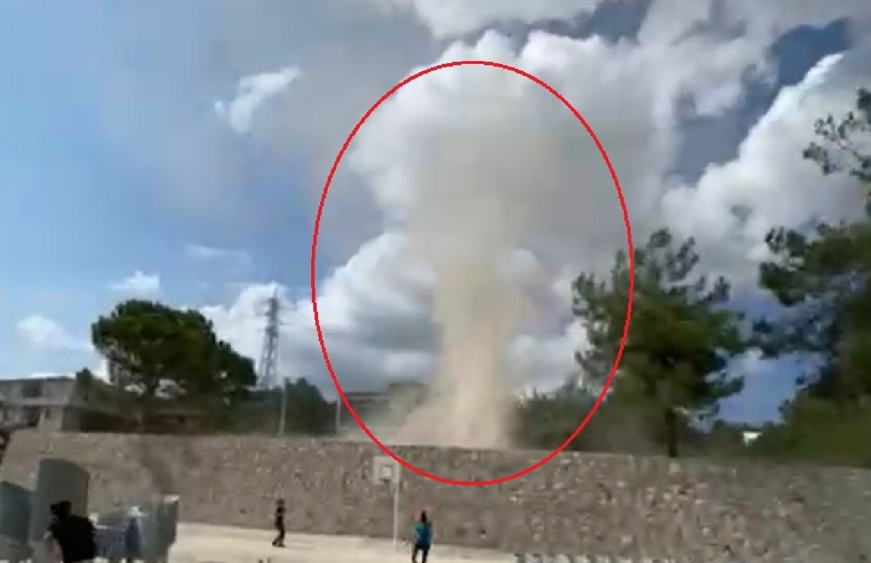 Havalanan sandalyeler etrafa savrulurken, o anlar çevredekilerin cep telefonu kamerasıyla kaydedildi.