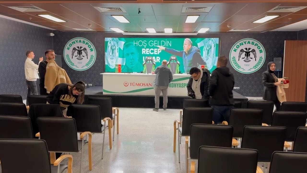 Konyaspor yönetimi yeni teknik direktör Recep Uçar ile imzalayacağı sözleşme için bugün saat 13.00'te basın toplantısı düzenledi. Düzenlenen toplantıya teknik hoca ve yönetim ekibi 40 dakika boyunca gelmeyince, toplantının başlamasının da bir süre daha uzayacağı açıklanınca basın mensupları protesto ederek toplantı salonundan ayrıldı.