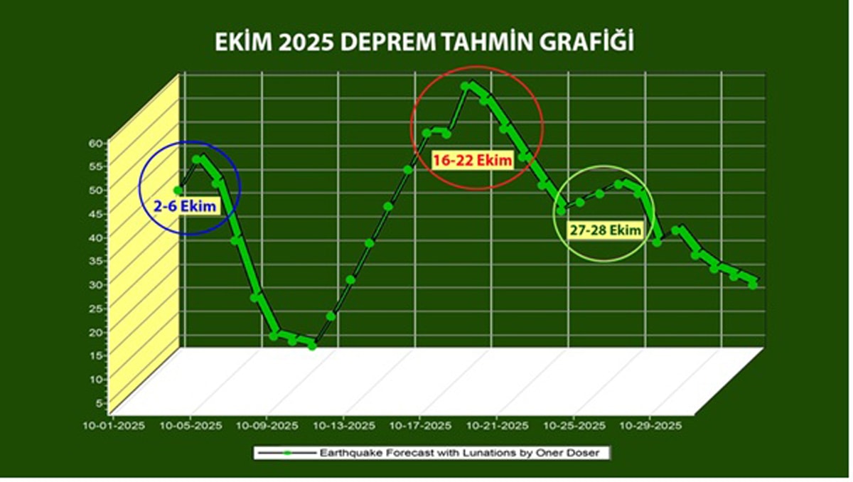 Grafikte görüldüğü üzere, Ekim ayının ilk günlerinde grafikte orta dereceli bir pik oluşuyor. 16-22 Ekim arasındaki tarihlerde risk yükseliyor. 27-28 Ekim civarında da yine orta seviyede bir yükseliş gözüküyor. Bunlar dünya geneli için geçerlidir. Ama yine de temkinli olmakta yarar vardır.