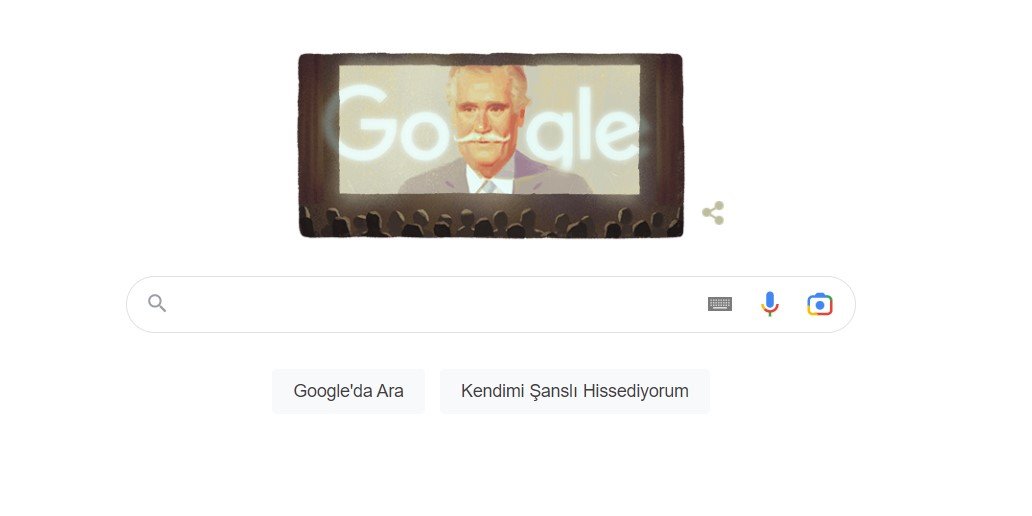"Bugünün Doodle’ı, aktör Hulusi Kentmen'i saygıyla anıyor. Kentmen, Türk sinemasının Yeşilçam döneminin en sevilen ve en üretken oyuncularından biriydi.