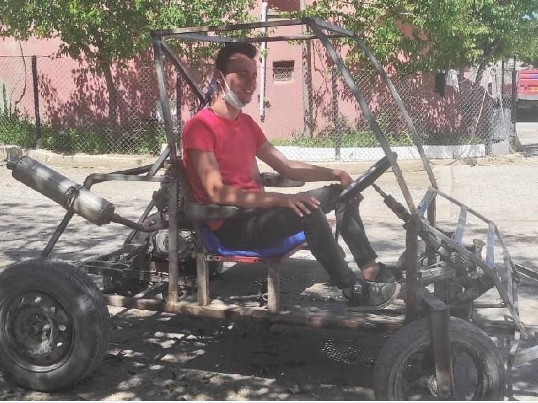 Ahmet Özkan ise biz arkadaşımla beraber malzemeleri temin edebildiğimiz kadar, elimizden geldiğince topladık ve böyle bir araç yaptık. Yasakları da değerlendirmek istedik. Biz bunu 2 ay gibi bir sürede yaptık imkan verilirse daha da iyisini yapacağımıza inanıyorum” şeklinde konuştu. (İHA)