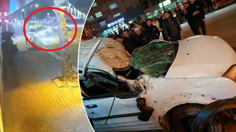 Abanoz’un kontrolünü kaybettiği araç, önce yaya geçidindeki sinyalizasyon direğine, ardından da kaldırımdaki ağaca çarpıp, takla atarak yan durdu.