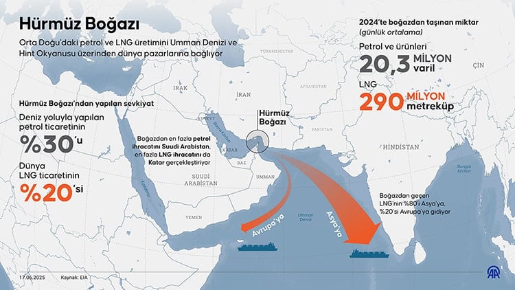 Küresel petrol ve sıvılaştırılmış doğalgaz (LNG) akışının önemli bir bölümü bu dar geçitten sağlanıyor.