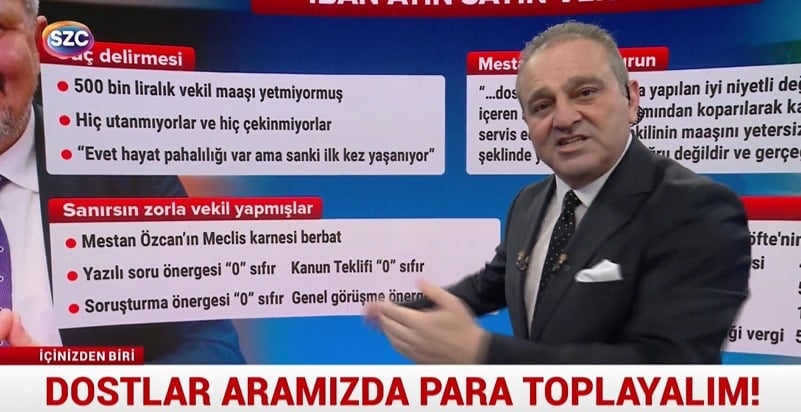 AKP'li vekile bir tepki de SÖZCÜ TV ekranlarında İçinizden Biri Ekrem Açıkel'den geldi. Açıkel, canlı yayında AKP'li Özcan'a "IBAN gönderin aramızda para toplayalım" diyerek tepki gösterdi: