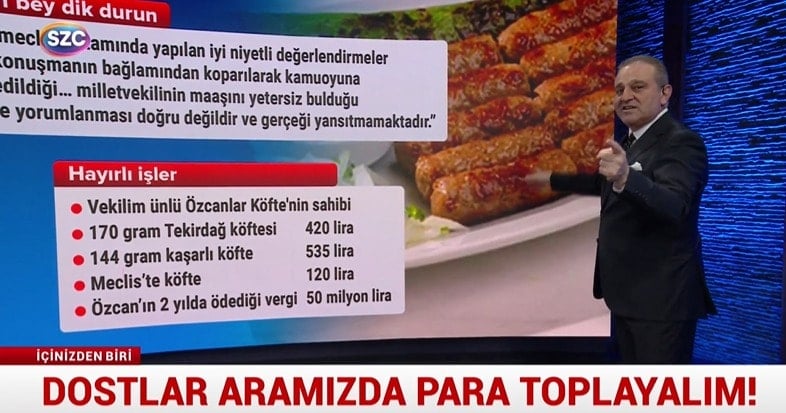 - Günün en önemli konusuydu. Hayırlı işler bol güneşler. Sayın vekilimiz önemli bir gıda firmasının da sahibi. Köfte firması var. Vekilim köfteyi kendi firmasında şu fiyatlara satıyor: