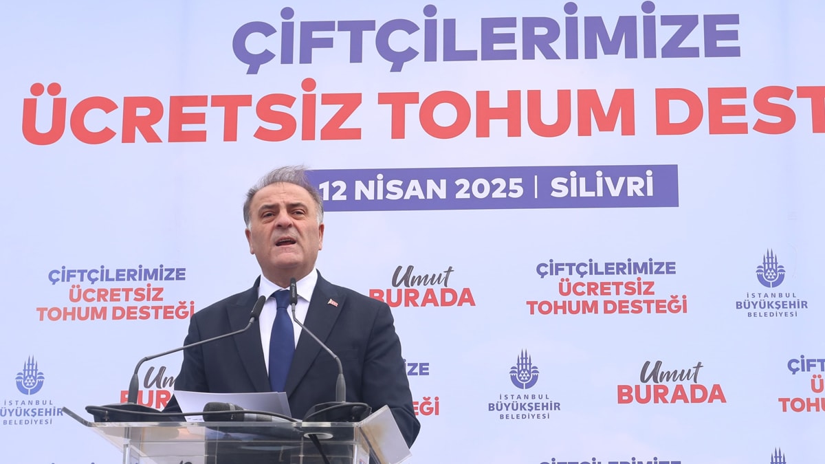Silivri'de ''Yağlık ayçiçeği, kuru fasulye ve nohut tohumu dağıtım töreninde'' konuşan İBB Başkan Vekili Nuri Aslan, ''Şu an Silivri zindanında esir tutulan, İstanbul halkının oylarıyla 3 kez seçilen Ekrem Başkanımız, İstanbul’da tarımsal üretimin yeniden canlanmasına büyük önem veriyor ve İstanbul’u sizin desteklerinizle kazandığı ilk günden beri İstanbul’da tarımsal üretimin gelişimine destek veriyor. Ekrem Başkanımız ise ne yazık ki biz burada bu desteği çiftçilerimize verirken, az ileride Silivri Cezaevi’nde tutsak edilmiş durumda. Kalbimiz Ekrem Başkanımızla. Dün Ekrem İmamoğlu'nun kurduğu düzen, bugün aynen devam edecek İstanbul'da, yarın tüm Türkiye'de. Halkın olanı halka vermeye devam edeceğiz” dedi.