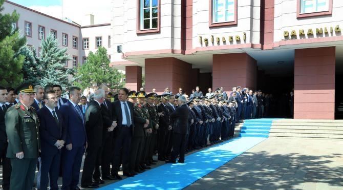 Soylu’yu İçişleri Bakanlığı Bakan Yardımcısı Sebahattin Öztürk, Müsteşar Selami Altınok, Jandarma Genel Komutanı Orgeneral Yaşar Güler, Emniyet Genel Müdürü Celalettin Lekesiz, Sahil Güvenlik Komutanı Vekili Tuğamiral Bülent Olcay, Ankara Valisi Mehmet Kılıçlar, üst düzey emniyet müdürleri ve Jandarma Genel Komutanlığı ve Sahil Güvenlik Komutanlığı’ndan üst düzey komutanlar karşıladı.