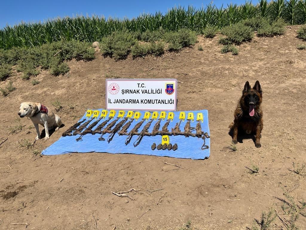 İçişleri Bakanlığı, Şırnak'ın Silopi ilçesinde toprağa gömülü 14 tüfek ve 5 el bombası ele geçirildiğini duyurdu.