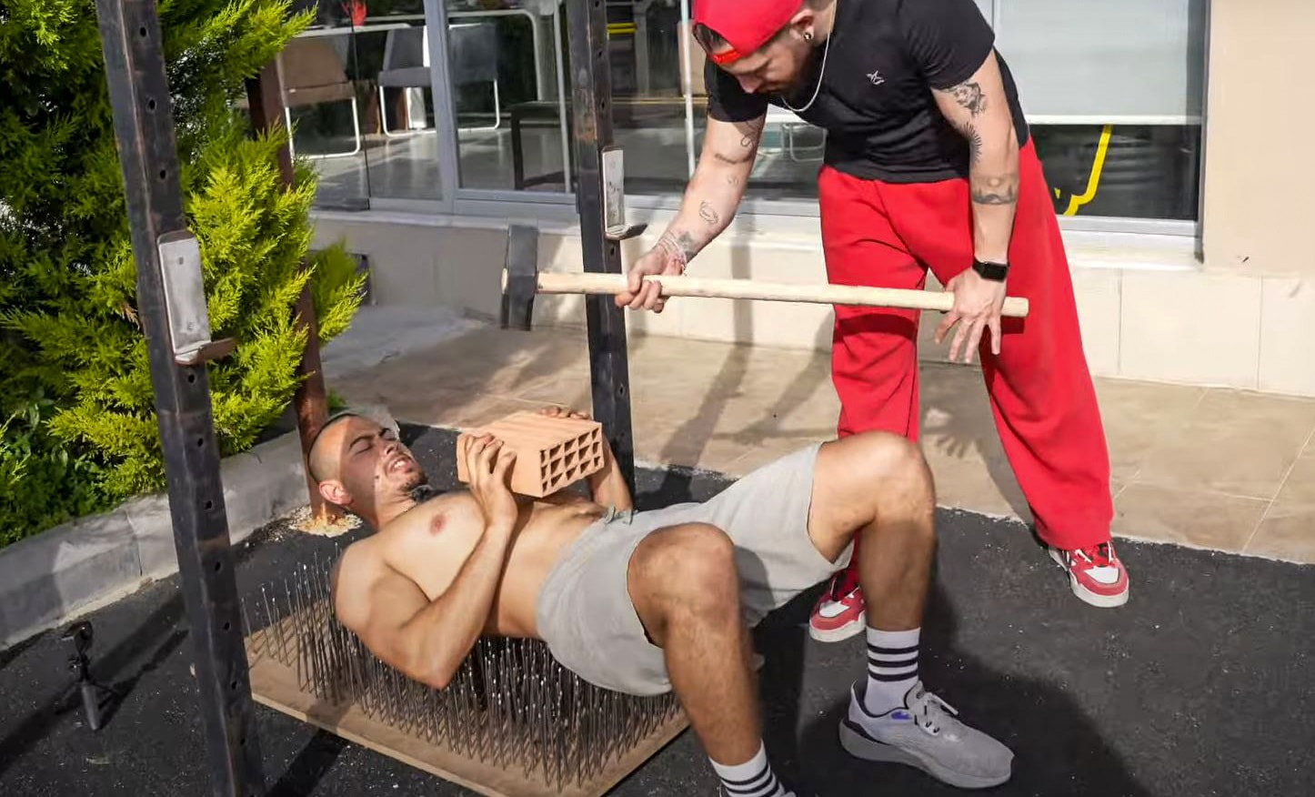 Videodaki gibi çivili yatağın üzerine yatacağını söyleyen Kuşçu, arkadaşlarıyla spor salonunun 1 yıllık ücreti karşılığında iddiaya girdi. Bunun üzerine bir tahta ve 700’e yakın çivi alan arkadaş grubu, onları tahtanın üzerine çaktı.