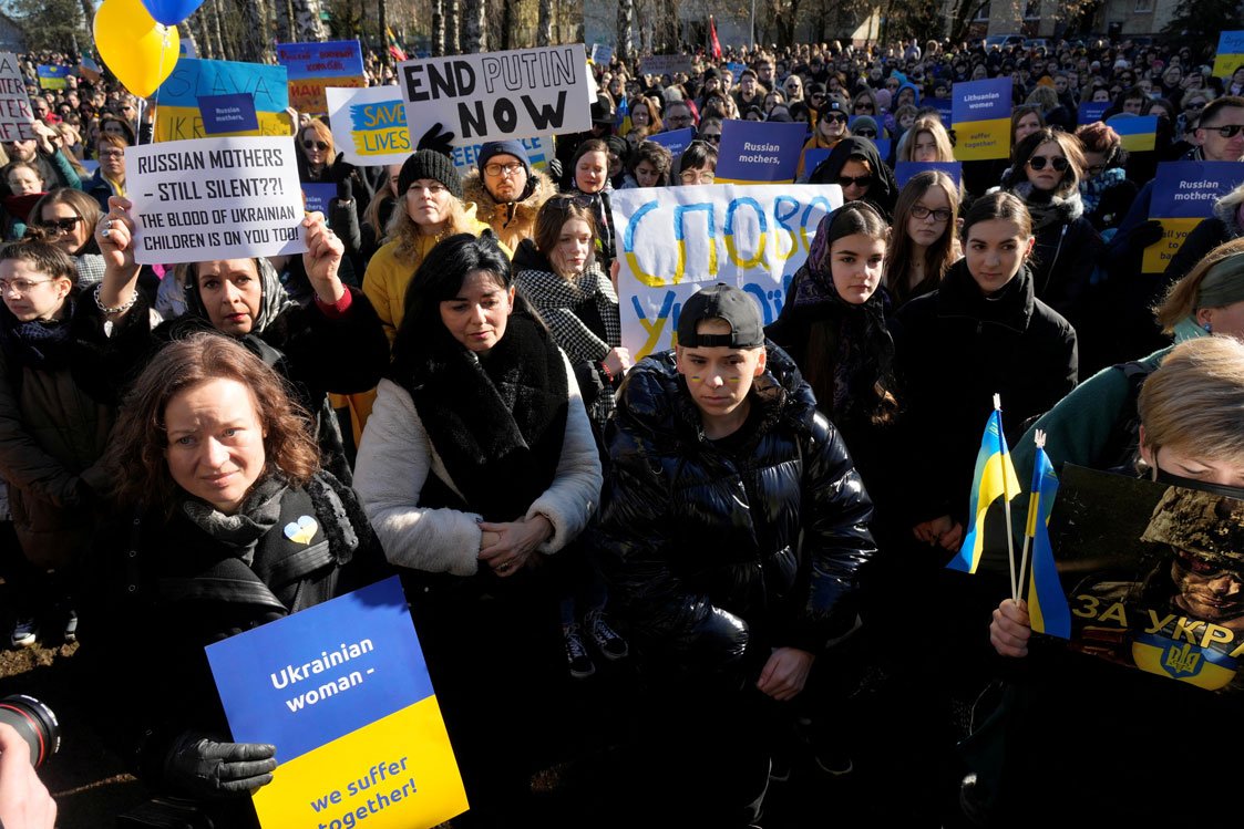 Rusya'nın Ukrayna işgaline karşı çeşitli ülkelerde protestolar düzenleniyor.