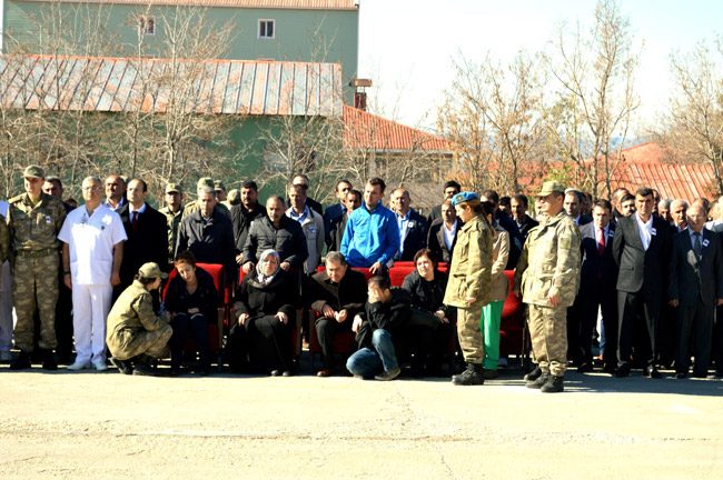 Tören, şehit Astsubay Mehmet Uygun'un Türk Bayrağı'na sarılı tabutunun ambulanstan alınarak katafalka konulmasıyla başladı. Törende saygı duruşunun ardından şehidin öz geçmişi okundu. Duaların ardından şehit Astsubay Mehmet Uygun'un katafalkdaki tabutuna annesi, babası ve eşi sarılarak gözyaşı döktü. Birgül Uygun, eşinin ını öperek, "Bak aşkım seni yalnız bırakmadım" diyerek ağıt yaktı.
