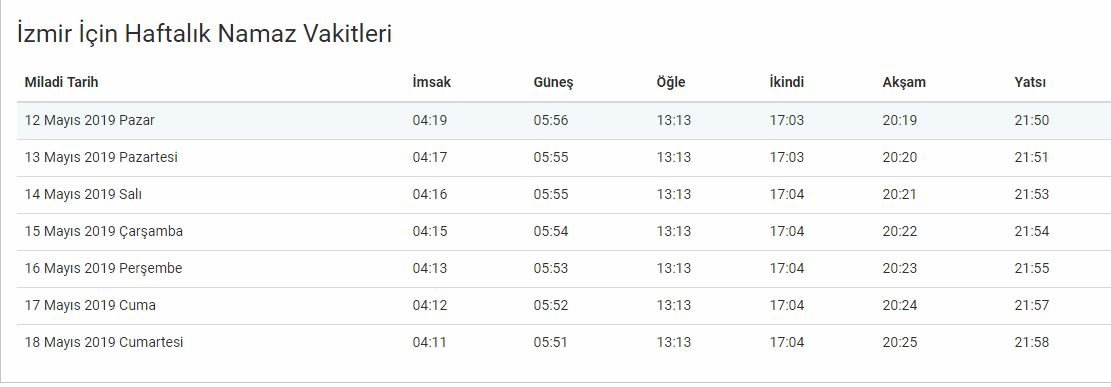 İZMİR İÇİN İFTAR VAKTİ
