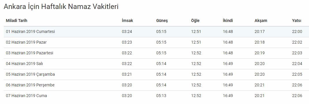 ANKARA İÇİN İFTAR VAKTİ