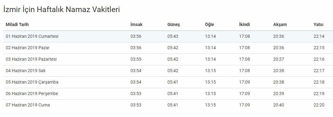 İZMİR İÇİN İFTAR VAKTİ