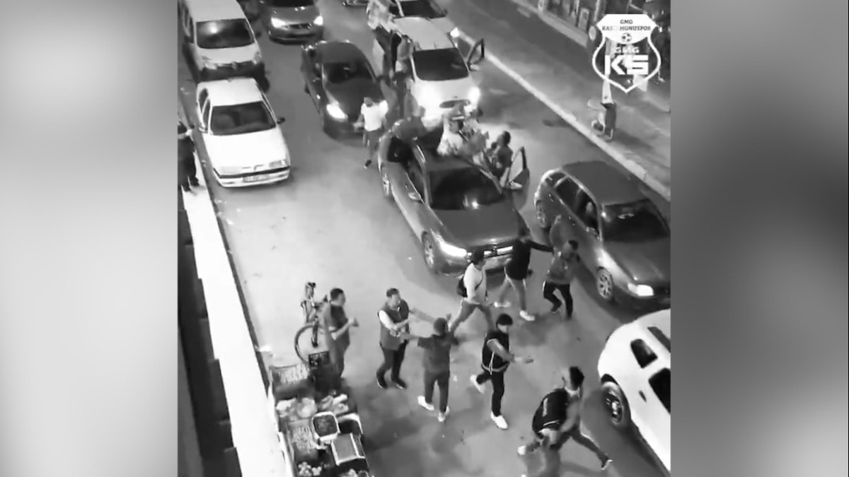 Maç günü ise stattan ayrılıp konaklayacakları otele hareket eden GMG Kastamonuspor kafilesini taşıyan otobüse, Hürriyet Caddesi'nde holiganlar tarafından taş atıldı.