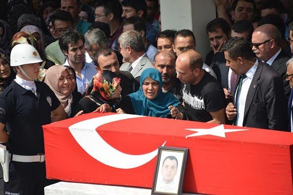 Erdoğan’ın gelişi nedeniyle olağanüstü önlemler alındı. Birçok vatandaş, cenaze alanına girmekte güçlük çekince tepki gösterdiler.  ‘Şehit cenazesine bu şekilde mi katılacağız’ şeklinde tepkilerini dile getirdi.