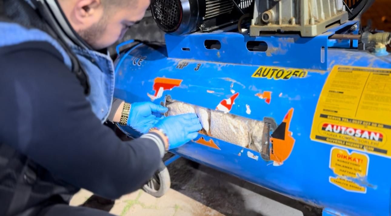 Dedektör köpek yardımıyla yapılan aramada, malzemelerin içine gizlenmiş 620 bin uyuşturucu hap ele geçirildi.