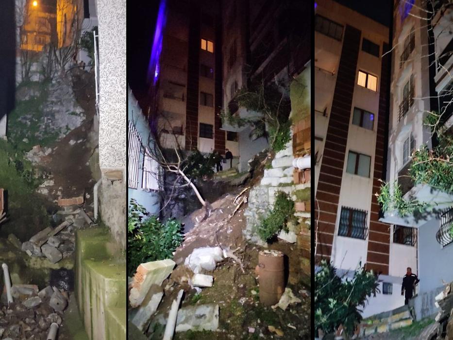 İstinat duvarı çökerek altında bulunan 3 katlı bir apartmanın duvarına zarar verdi. Çökme esnasında apartmanda bulunan aile sakinleri deprem olduğunu düşünerek kendilerini sokağa attılar. Aile sakinleri durumu hemen itfaiye ve zabıta ekiplerine haber verdi. İhbar üzerine olay yerine gelen ekipler, istinat duvarının çöktüğü bölgeyi şerit içine aldı.