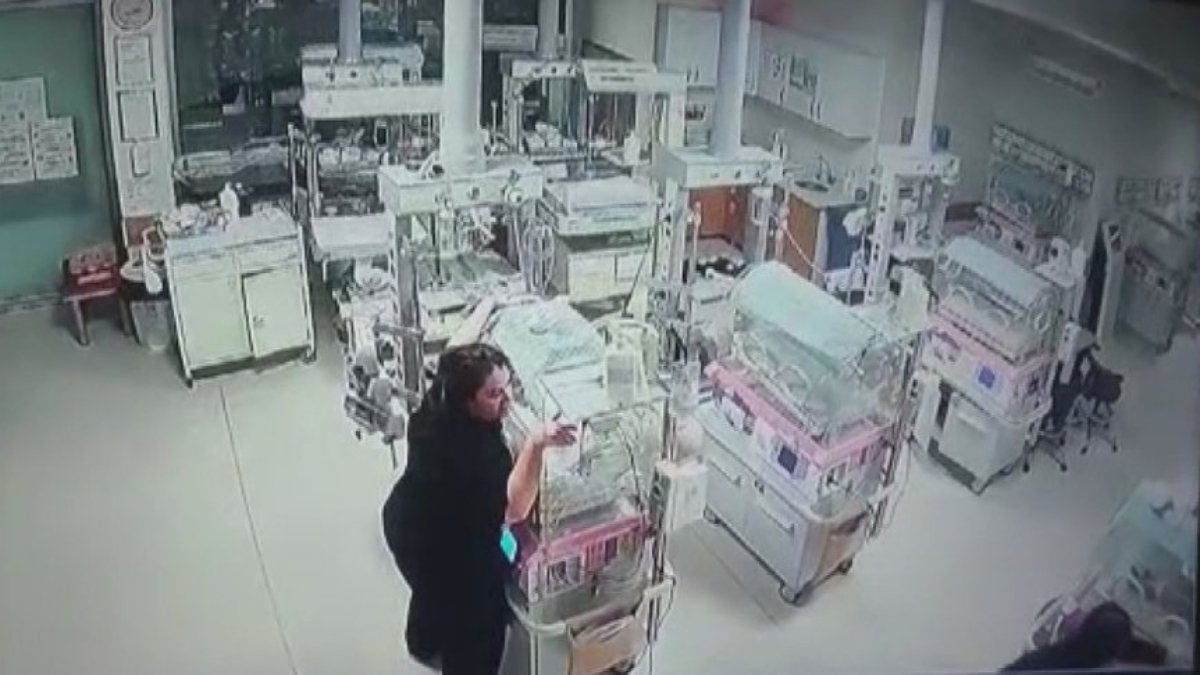 Kahramanmaraş'ın merkezli 7.7 şiddetindeki depremde iki hemşirenin, yoğun bakım ünitesinde tedavi gören bebeklerin bulunduğu kuvözleri korumak için sarf ettiği çaba güvenlik kameralarına yansıdı.