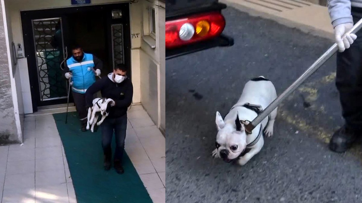 Gelen görevliler, hayvan yakalama aparatı ile pencereden eve girip, köpekleri ayrı odalara kapattı. Ardından kapıyı açan görevliler, köpeklerden birine boynuna aparat geçirip, diğerini iğne ile uyutarak hayvan barınağına götürdü.