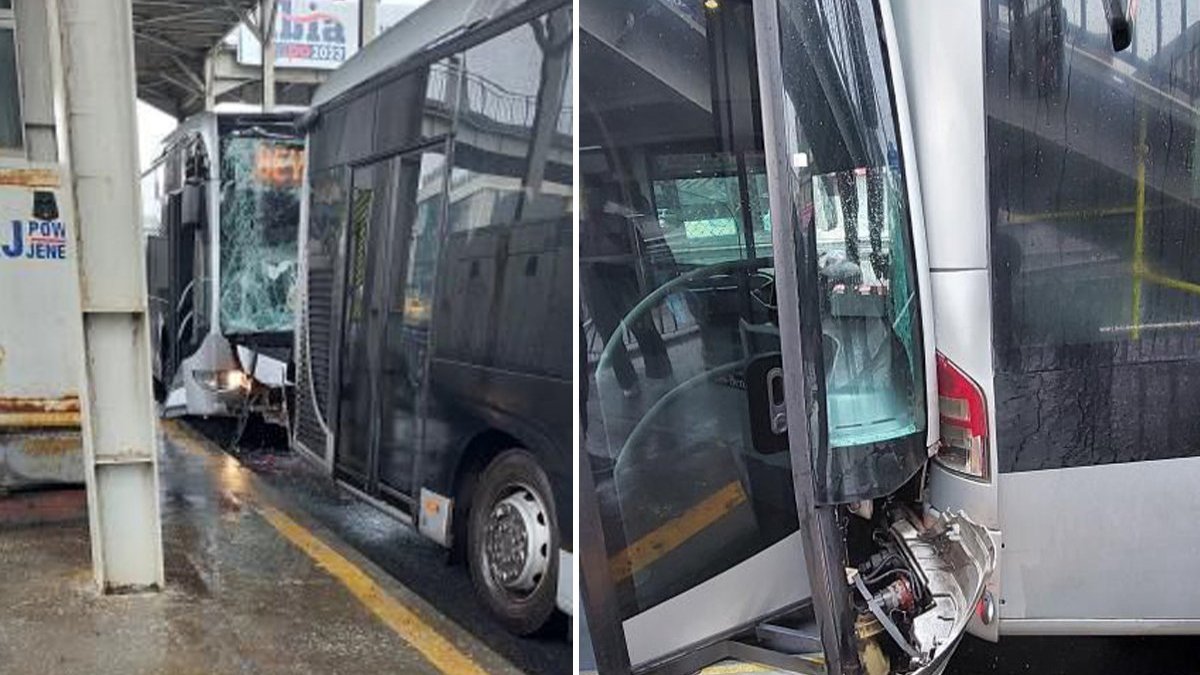 İstanbul Küçükçekmece Beşyol Durağı'nda içerisinde yolcular bulunan, arka arkaya seyreden 2 metrobüs henüz belirlenemeyen nedenle çarpıştı.