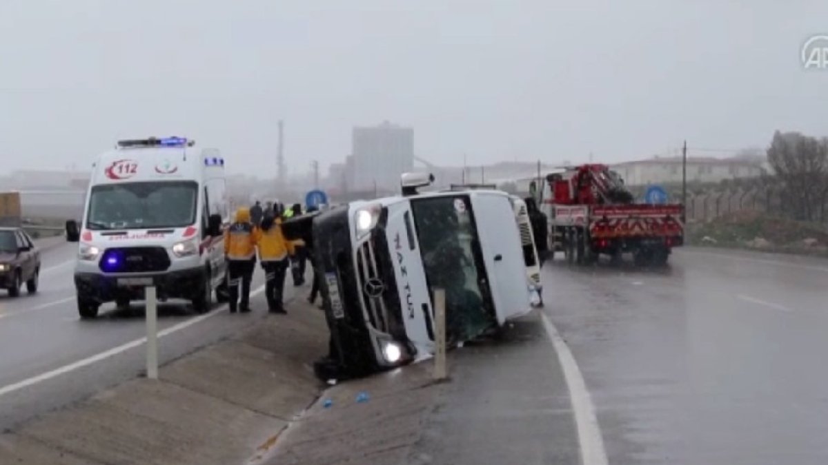 Kocaeli'nin Kirazpınar Mahallesi 2795. Sokak'ta seyreden Y.T. yönetimindeki 41 P 1590 plakalı servis midibüsü, kontrolden çıkarak şarampole devrildi. Kazada sürücü ile araçtaki 7 işçi yaralandı. Çevredekilerin ihbarı üzerine kaza yerine jandarma, itfaiye ve sağlık ekipleri sevk edildi. İtfaiye personelince sıkıştıkları yerden çıkarılan yaralılar, ambulanslarla hastaneye kaldırıldı. Yaralıların sağlık durumunun iyi olduğu öğrenildi. (AA)