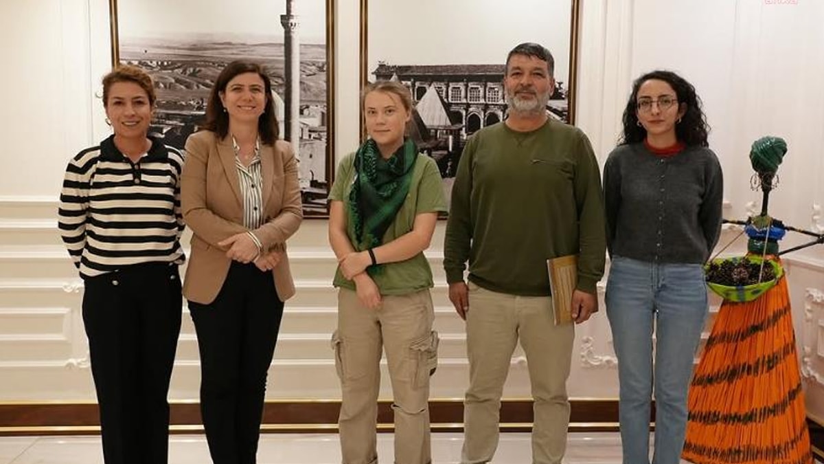 Diyarbakır Büyükşehir Belediyesi’nin sosyal medya hesabından yapılan açıklamada, “Eş Başkanımız Serra Bucak, İsveçli çevre aktivisti Greta Thunberg’i kabul etti. Görüşmede, iklim değişikliği ve küresel ısınmanın doğaya etkileri üzerine fikir alışverişinde bulunuldu. Ortak çalışmalarla çevre bilincinin yaygınlaştırılması ve doğanın korunması için iş birliği mesajları verildi” denildi.
