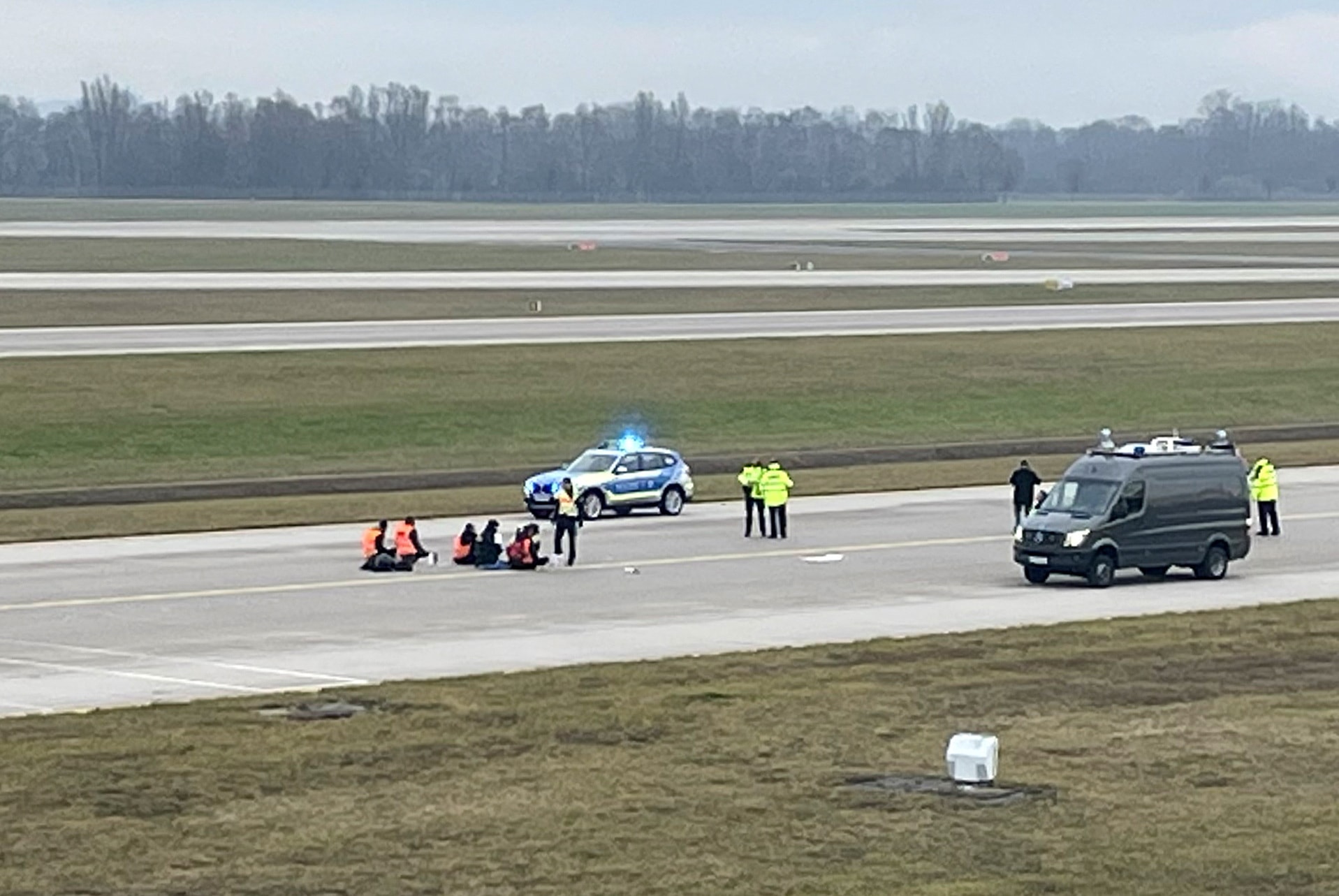 Köln polisi beş aktivistin iniş ve kalkış pistine yakın alanda eylem yaptığını ve hava trafiğinin de bu nedenle askıya alındığını açıkladı.