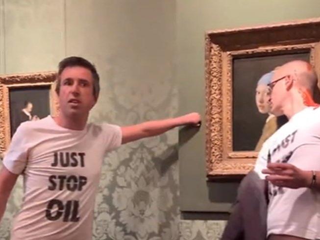 Hollanda'da "Just Stop Oil " (Sadece Petrolü Durdurun) adlı çevreci grup üyesi üç aktivist, iklim değişikliğine dikkati çekmek amacıyla Hollandalı ressam Johannes Vermeer'in "İnci Küpeli Kız" tablosunu hedef aldı.