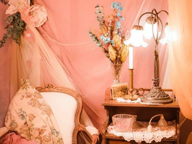 Oda, art nouveau tarzında tasarlanmış, kavisli hatlara ve ayrıntılı süslemelere sahip mobilyalarla dolu olacak.