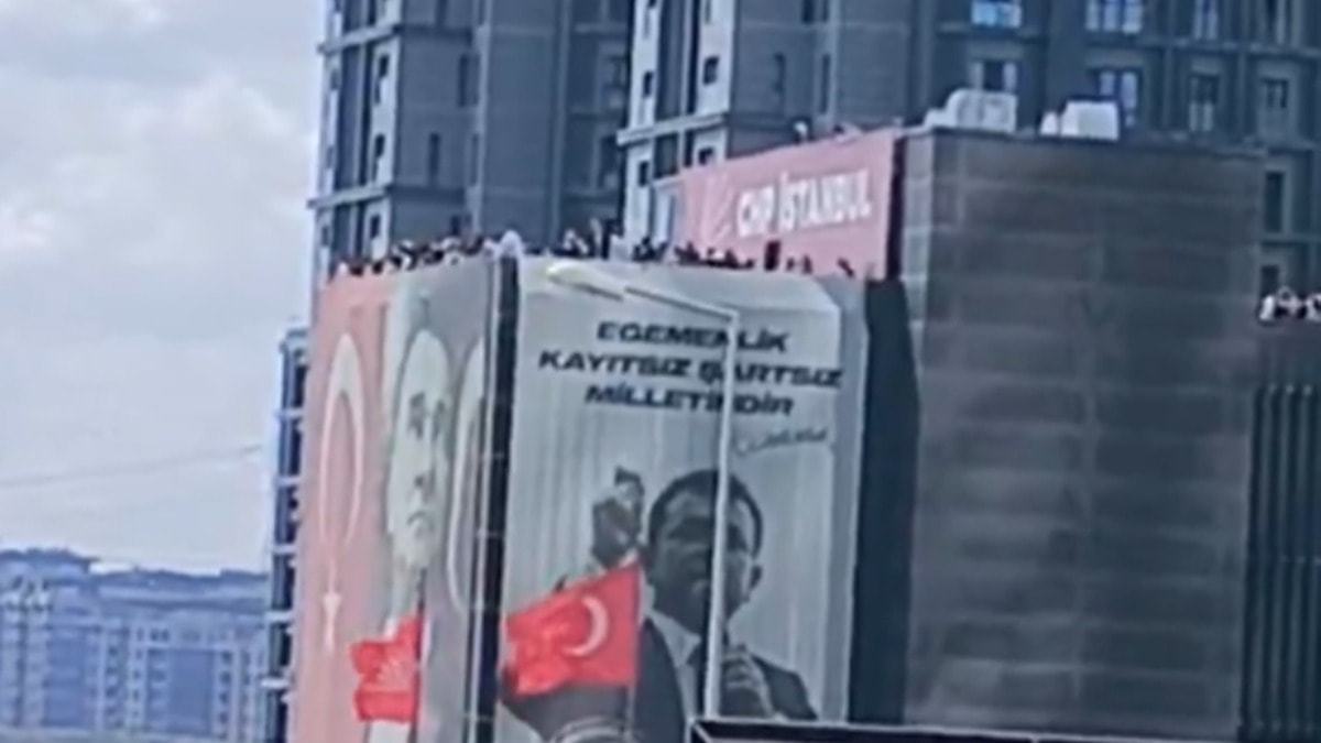 Biber gazıyla müdahale edilen bazı partililer çatıya çıktı.