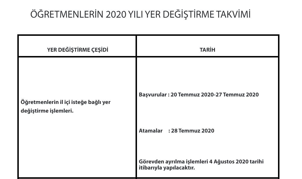 ÖĞRETMENLERİN İL İÇİ YER DEĞİŞTİRME ATAMA KILAVUZU 2020