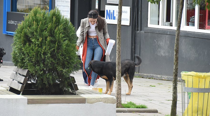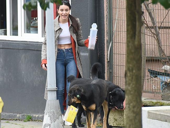 Yağmurlu güne aldırış etmeden Etiler'deki evinin önünde köpeklere mama verirken görüntülenen İlayda Aydın, köpeklerle ilgilenmekten fotoğraflarının çekildiğinin farkına bile varmadı.