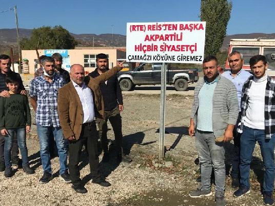 Tokat merkez ilçeye bağlı Çamağzı Köyü Muhtarı Mustafa Keskin, bir grup köylü DSİ Ve İl Özel İdaresi’nden destek almadıkları gerekçesiyle köyün girişine "Reisten başka hiç bir AK Parti'li siyasetçi Çamağzı köyüne giremez" yazılı büyük bir tabela dikti.