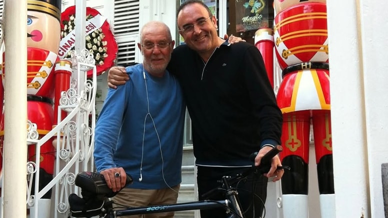Şeşen ile karesini yayınlayan Akın, sanatçının bisikletinin Oyuncak Müzesi'nde sergilendiğini açıkladı.