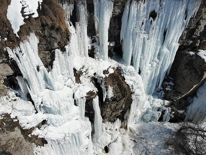Suları Melendiz Çayı'na dökülen 25 metre yüksekliğinde ve 12 metre genişliğinde olan Ilısu Şelalesi'ndeki buz sarkıtları görenleri hayran bıraktı.