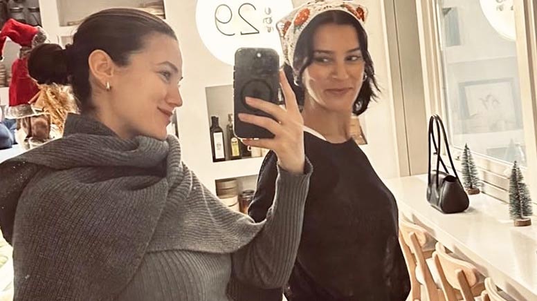 Ablası Huri Deniz ile poz veren oyuncu, "Göbüş var, göbüş var" ifadelerini kullandı.
