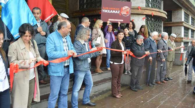 Fotoğraf : Yavuz ALATANBaşkent Dayanışması İller Bankası’nı kırımızı kurdele ile donattı. Tarihi eser statüsündeki banka binasının, yıkım kararını protesto edildi.
