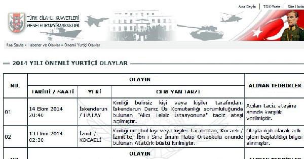 Genelkurmay Başkanlığı'nın internet sitesinde yapılan açıklamada, "Kimliği meçhul kişi veya kişiler tarafından Kocaeli İzmit'te İbni Sina İmam hatip Ortaokulu önünde bulunan Atatürk Büstü kırılmıştır. Olayla ilgili adli işlem başlatılmıştır bilgisi alınmıştır" derildi. Açıklamada olayın 13 Ekim 2014 saat 02.30'da meydana geldiği duyuruldu.