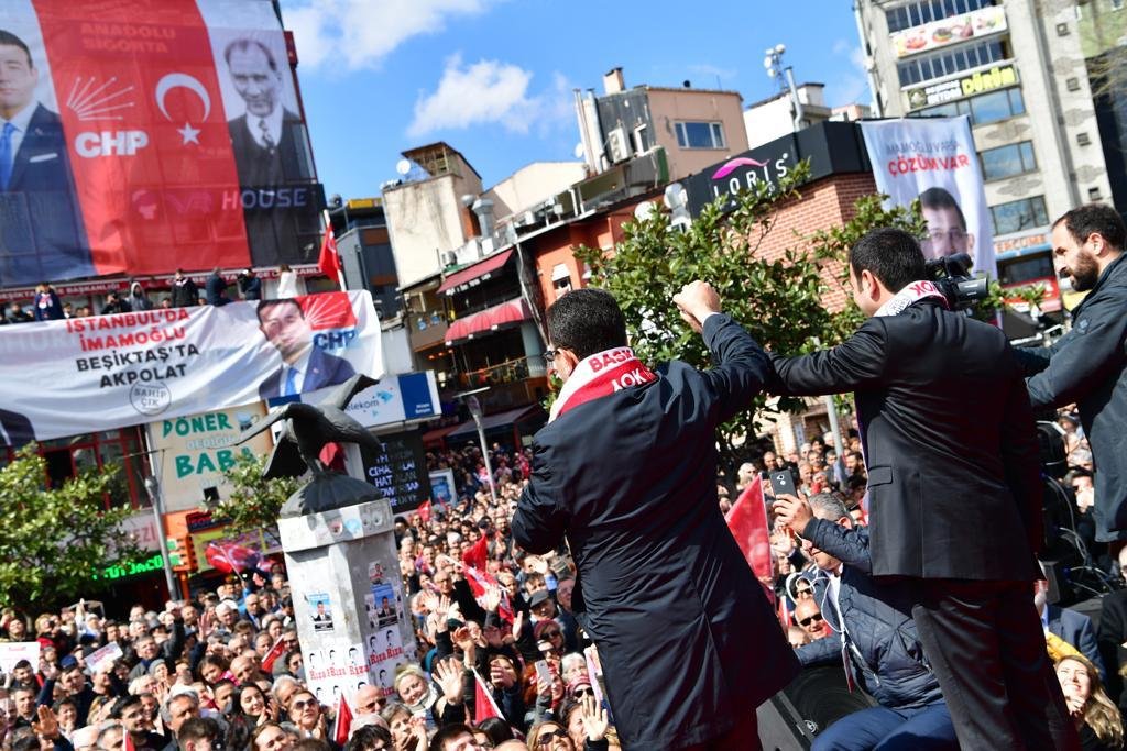 "NE SAVAŞI YA SEÇİME GİDİYORUZ"Hacı Bektaş-ı Veli'nin ''Yolumuz ilim-irfan, insan sevgisi yolu'' sözünü kendilerine ilke edindiklerini kaydeden İmamoğlu, sözlerini şöyle sürdürdü: 'Şimdi konuşanlara bakın. Neyini konuşacağım? Birileri, güzel söz söylese de burada ben de onu size söylesem. Üzülüyorum. Konuşmuyorum zaten. Şunu söyleyeyim. Beni beğeniyor, aramızda kalsın. Sözlerinden anlıyorum ki, bana oy verebilir. Oy konusu Allah'la kul arasında. Ne derse desin inanmayın, bana oy verebilir. Hani insan sevdiğine takılırmış ya. Dayandı dayandı son 2-3 gün dayanamadı artık. Beşiktaş'ı kastederek kaymak tabakası, doğru söylüyor. Ama bu kardeşiniz göreceksiniz İstanbul'un 39 ilçesini de kaymak tabakası yapacak. Bu şehrin her tarafını eşitlersek, 80 kişilik sınıflarda insanları okutmazsak bu şehrin parkları, çevresi, her yeri dünya güzel bir ilçe olursa, o zaman İstanbul'un tadına doyum olmaz. Kendimize alan çevirip diğer taraflarda ne olursa olsun diyenlerden değiliz. Bu şehir çevre dostu olacak. Bu kente özeni insana saygıyı biz bu şehre yaşatacağız. Bu şehirde emekte karşılığını bulacak. İşsiz bir İstanbul olmayacak. Biz gençlerimizi, ne yapacağını bilmeyen gençler değil, ne yapacağını bilen gençler haline getireceğiz. İBB'yi devir aldığımızda, bu belediyede çalışanlar olabilir burada, emek harcayan herkes bizim başımızın üstünde olacak. Dün bir toplantı yapmışlar, oraya bir ekran koymuşlar, aklı kıt yöneticiler oraya yazmışlar, 'Son İstiklal Savaşı'mız!' Ne savaşı ya. Seçime gidiyoruz. İBB'de çalışan binlerce kardeşim de 'Ekrem Başkanları'nı bekliyor. Üretmek için, İstanbullu'lar için beni bekliyor. Çalışıyor görünüp para alanlar varsa, şimdiden gitsin.''