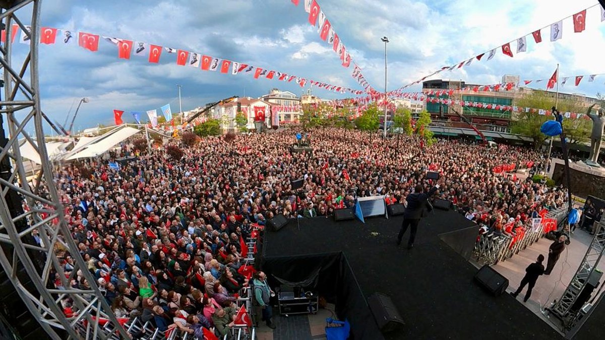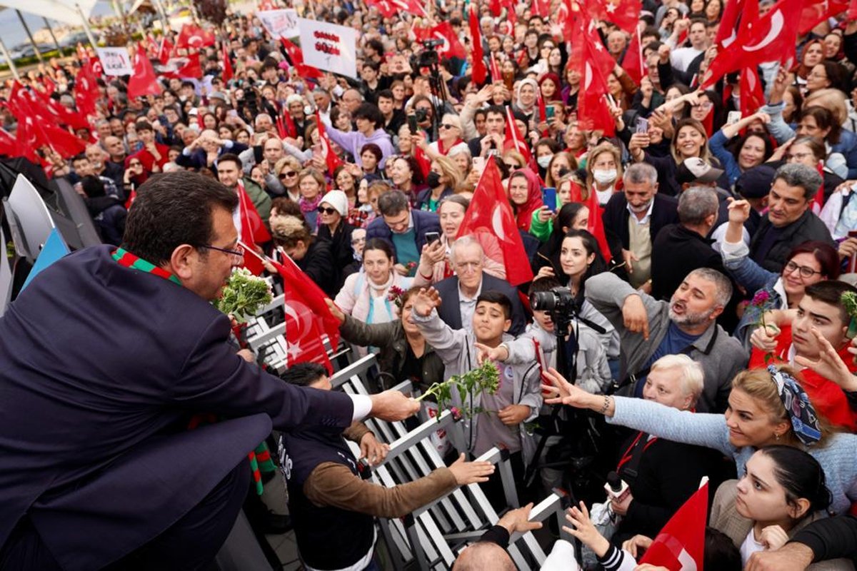 İmamoğlu, kendisini dinlemeye gelen kalabalığa, “Denizin ortasında ben bu kalabalığı görseydim denize atlar, yüze yüze gelirdim size be, yüze yüze gelirdim vallahi” sözleriyle seslendi.