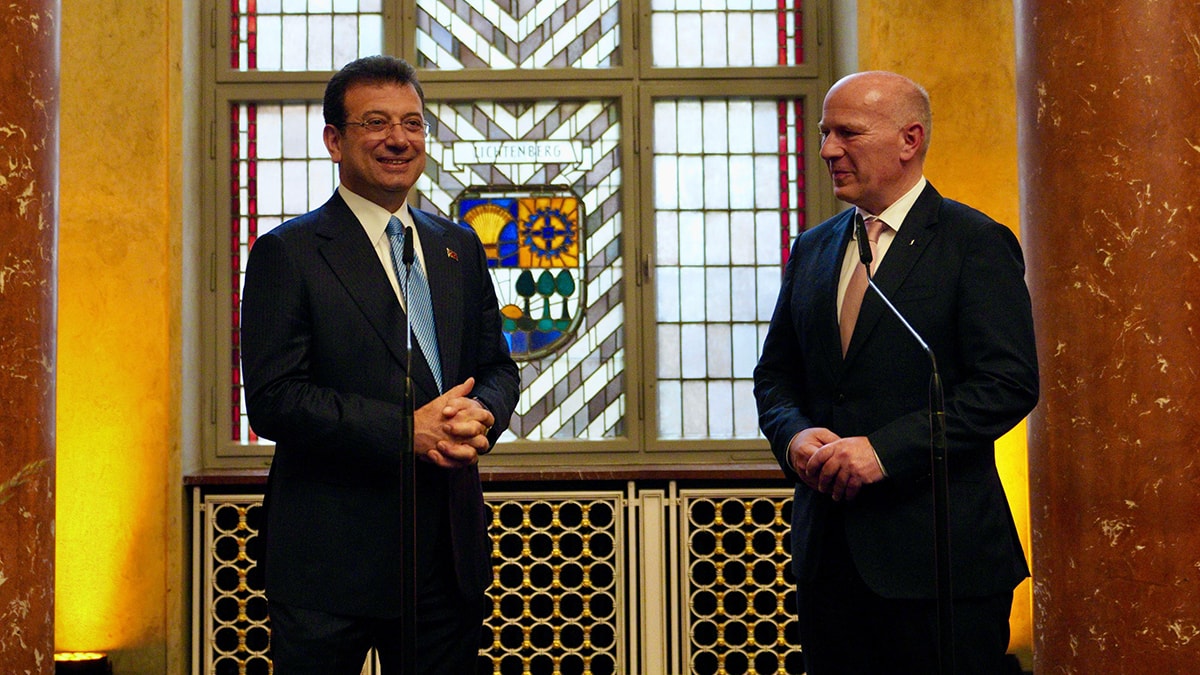 Türkiye Belediyeler Birliği (TBB) ve İstanbul Büyükşehir Belediye (İBB) Başkanı Ekrem İmamoğlu, İstanbul-Berlin arasında imzalanan “kardeş şehir” anlaşmasının 35’inci yıl dönümünde Almanya’da Berlin Belediye Başkanı Kai Wegner ile bir araya geldi.
