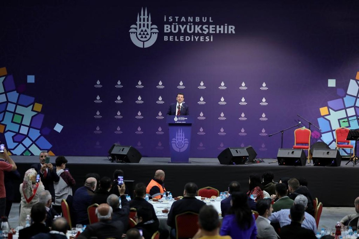 İftar öncesinde mesai arkadaşlarına seslenen İmamoğlu, “Emekçi dostlarımla, arkadaşlarımla, yol arkadaşlarımla, hukukçularımızla bu akşam bir arada olmaktan, bir arada Ramazan ayının içerisinde bir akşam iftarımızı beraber açabilmekten çok mutluyum. İstanbul Büyükşehir Belediyesi'nin güzel hizmetlerinden dolayı gurur duyuyorum. İstanbul Büyükşehir Belediyesi'nin çalışanlarını kutsal bir görev yaptıklarının farkında olmasından duyduğum memnuniyet çok yüksek” dedi.