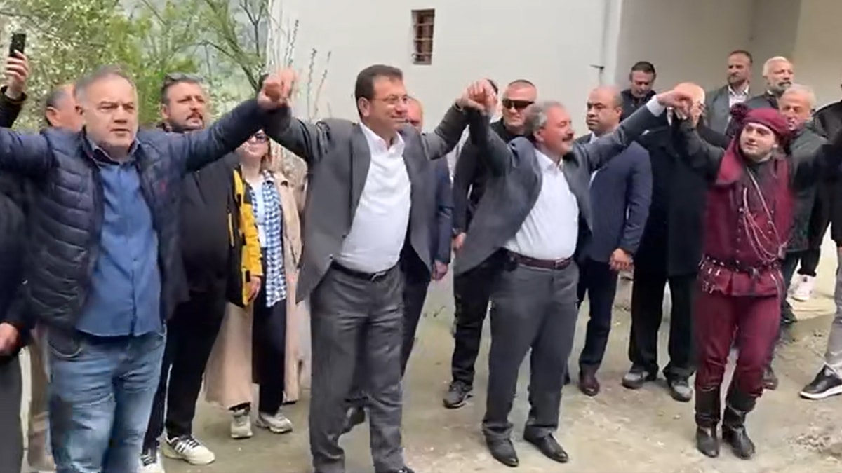 Doğduğu Cevizli Köyü'nü ziyaret eden ve akrabalarıyla görüşen İmamoğlu, kendisini karşılayan horon ekibiyle birlikte horon tepti.