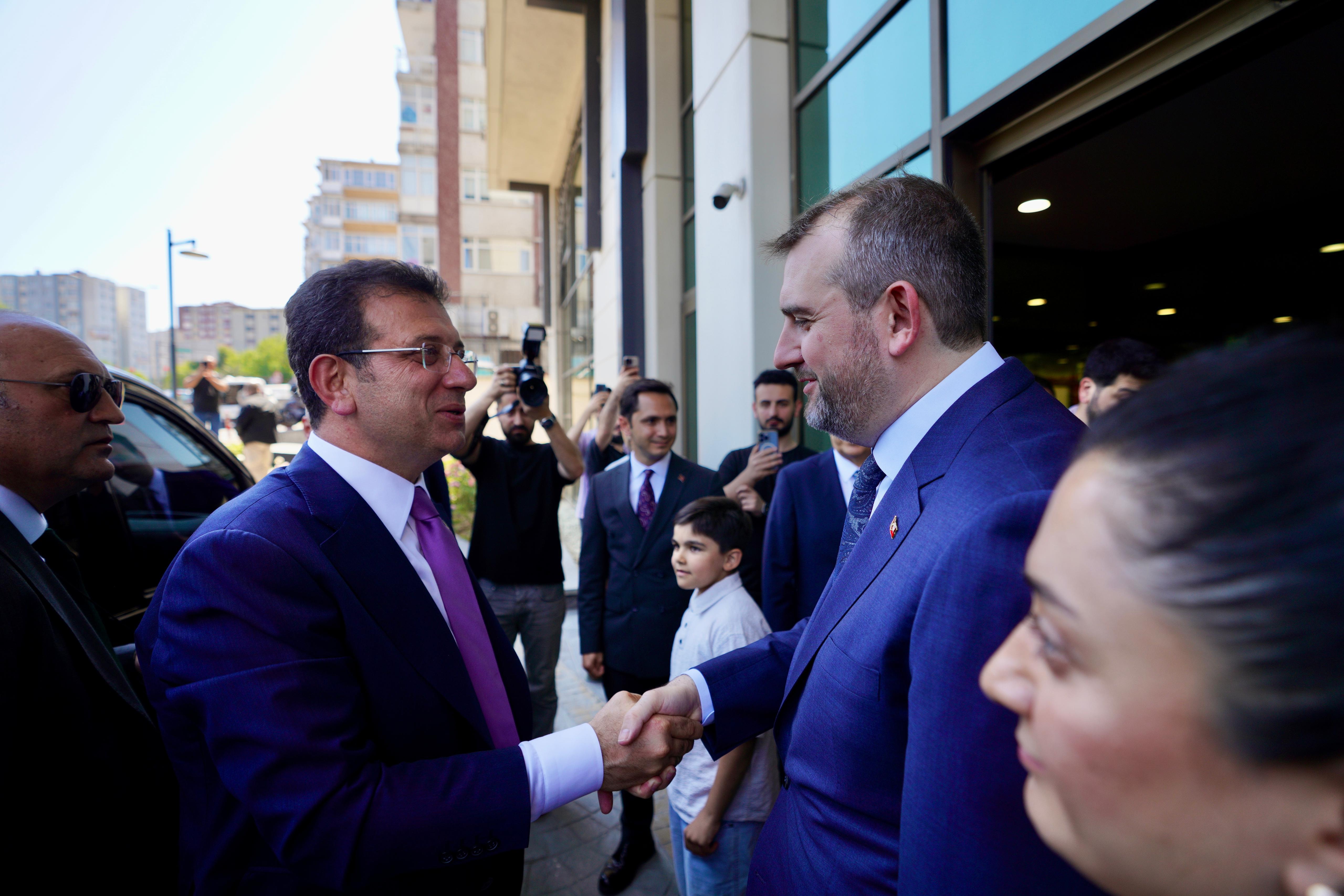 İstanbul Büyükşehir Belediye (İBB) Başkanı Ekrem İmamoğlu, ikinci kez aynı göreve seçilen AKP’li Güngören Belediye Başkanı Bünyamin Demir’i makamında tebrik etti.