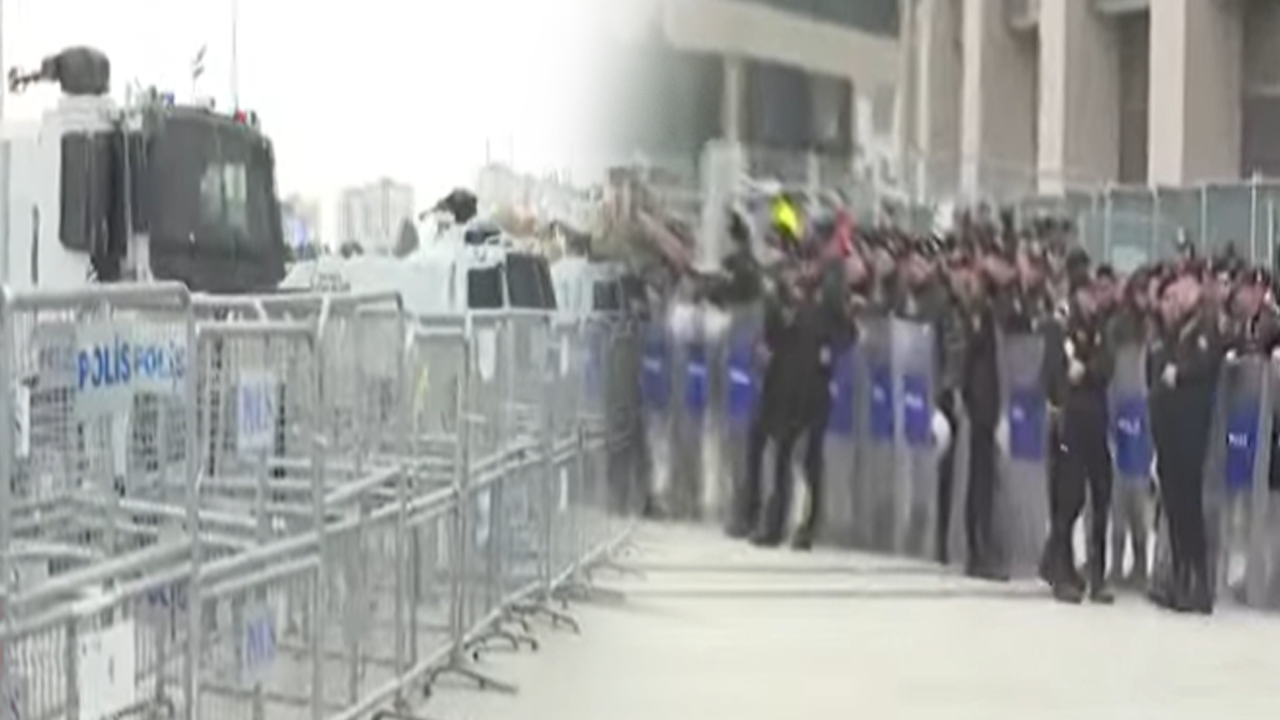 Yaklaşık on tane toma var. Bir çok noktada aramalardan geçilip buraya gelebiliyorsunuz. CHP aracı dün Özgür Çelik'in çağrısın ardından Çağlayan'a gelmişti. Geldiğinde bu alana giremedi. Önünü bir sivil aracın kestiği ve bu aracın polis aracı olduğu belirtilmişti. Sabah saatlerinde araç çekildi. Dakikalar sonra Ekrem İmamoğlu saatler 11'i gösterdiğinde savcının karşısına çıkıp casusluk soruşturması için burada olacak."