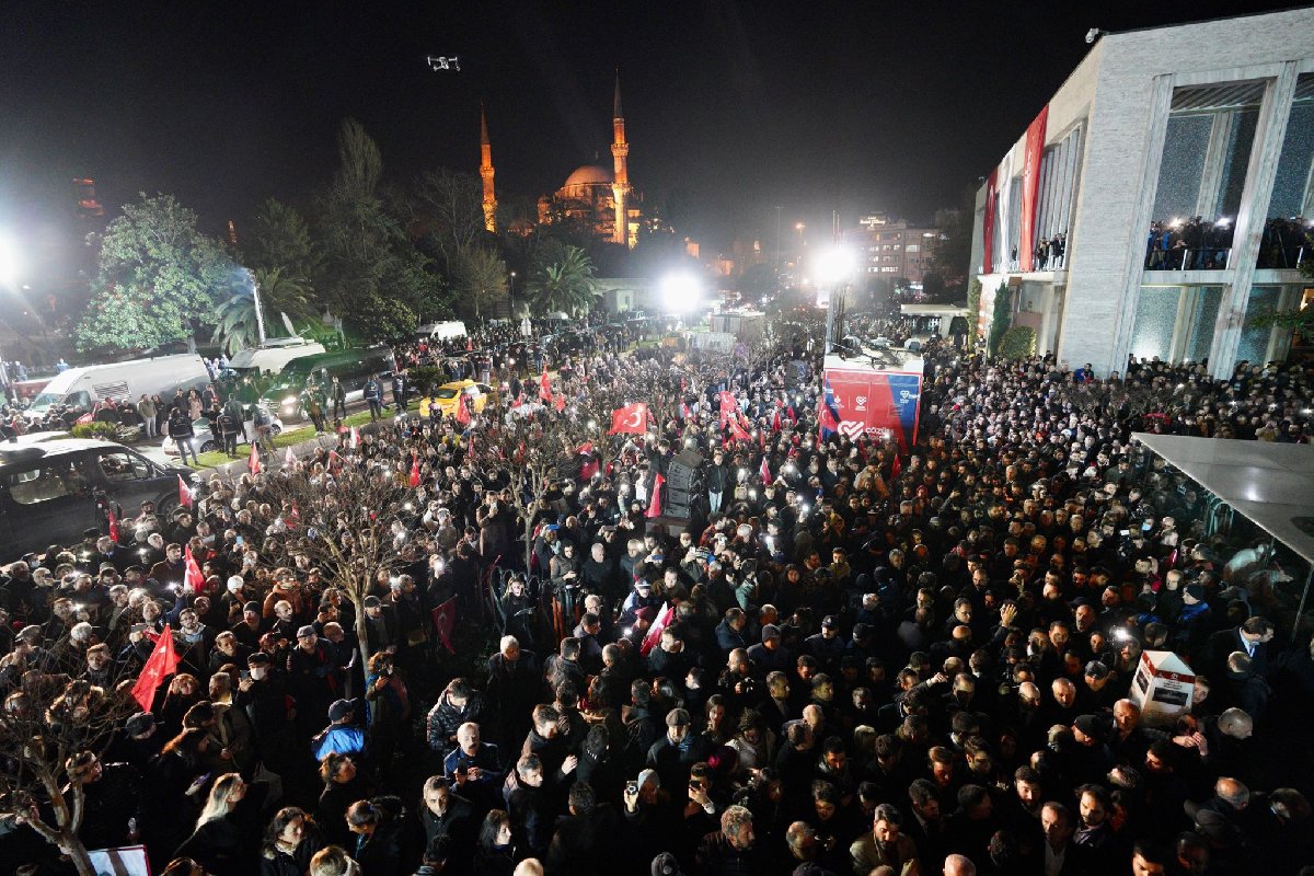 İBB Başkanı İmamoğlu'na siyasi yasak kararı Saraçhane'de toplanan vatandaşlara anons edildi. Karar vatandaşlar tarafından yuhalanarak protesto edildi. "Hak, hukuk, adalet", "Hükümet istifa" sloganları atıldı.
